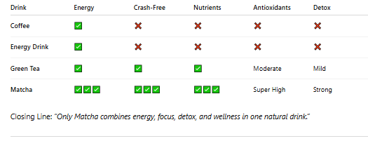 ✅ Packed with Antioxidants – Matcha has up to 137x more antioxidants (EGCG catechins) than regular green tea. These fight free radicals, support cell health, and keep you glowing from the inside out.
